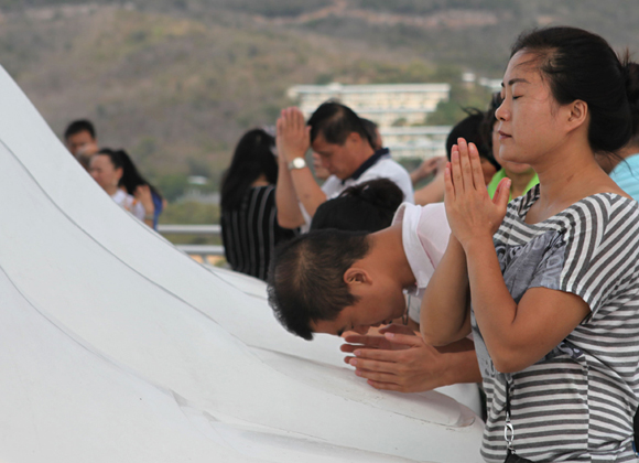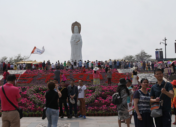2016年3月9日(农历二月初一),阳春三月,春意正浓,错峰游兴起,前来海上观音祈福赏春的信众、游人络绎不绝。南山海上观音道场于吉时在圆通宝殿内举行上供祈福法会。