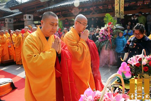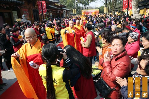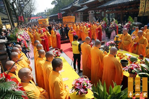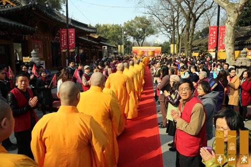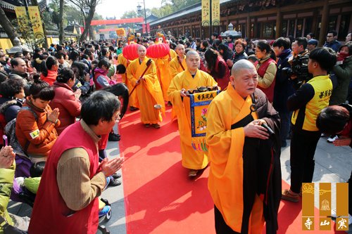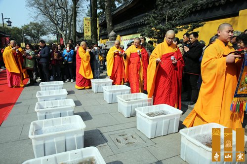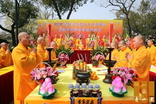 龙天盛会,因缘殊胜,2016年3月12日,为庆苏州寒山寺法主和尚性空长老九十五华诞,苏州寒山寺隆重举行丙申年和合梦放生法会。苏州寒山寺、重元寺、白鹤寺、泰州观音寺、苏州和合文化基金会、苏州弘化社慈善基金会四众弟子齐聚寒山寺向长老祝寿。