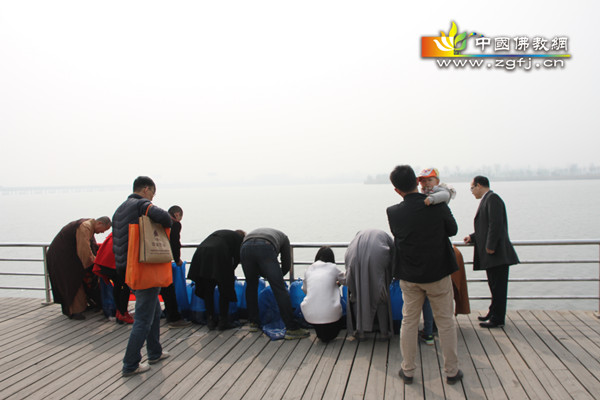 是日上午十时,众法师及居士在正定县太平庄村南滹沱河举行放生仪式。现场居士随同法师虔诚诵念放生仪轨,主法法师为放生物种洒净,为放生物命忏悔罪业、授三皈依、持诵经咒,祈愿生灵早闻佛法,脱离恶道,生于善道。