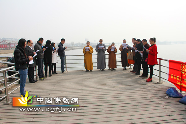 随后,法师和居士将物种放生到滹沱河中,祈愿被放生灵回归自然,永不遭遇网捕吞杀,获尽天年。愿以此法会殊胜功德回向天恩寺大雄宝殿早日建成,回向恩师上明下证大和尚法体康健,回向慈悲最美感动中国慈善越做越好,回向十方法界一切有情众生。