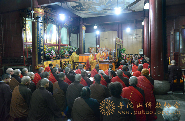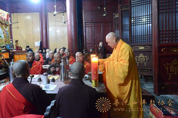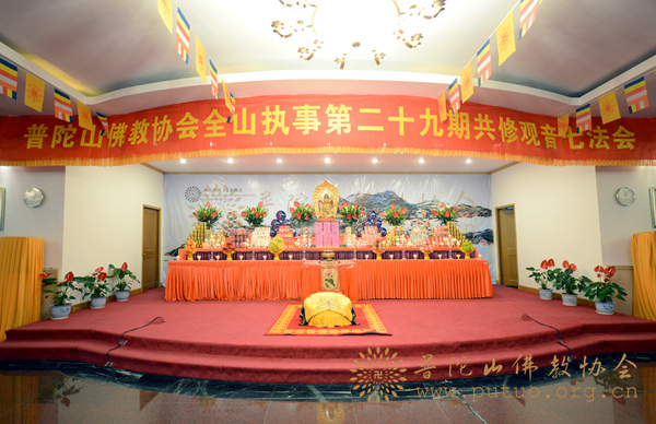 2016年3月22日,农历丙申年二月十四,普陀山佛教协会为恭迎观世音菩萨圣诞(农历二月十九)举行的全山执事第二十九期共修观音七法会,圆满结束。