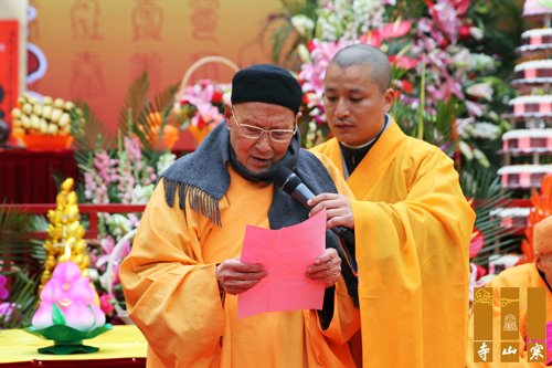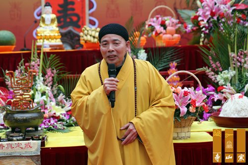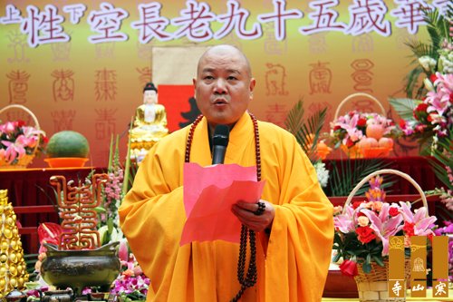 九十高寿的无锡祥符寺方丈无相长老开示,代表无锡祥符寺两序大众对性空长老九五华诞表示热烈祝贺,祝愿性空长老光寿无量,永久住世,对性空长老不辞辛苦、日夜操劳,为寒山寺的发展所立下的汗马功劳高度赞誉。