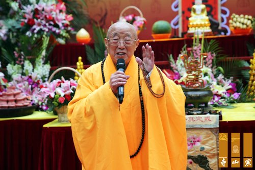 九十高寿的常州天宁寺方丈松纯长老开示,他说今天是个好日子,大喜事。松纯长老高兴的回忆起1991年与性空长老到香港天坛大佛的情景,称赞性空长老爱国爱教的精神,祝愿性空长老长寿。