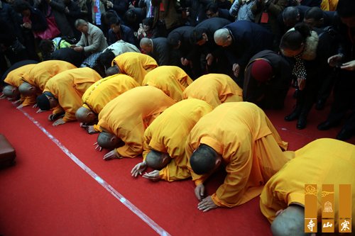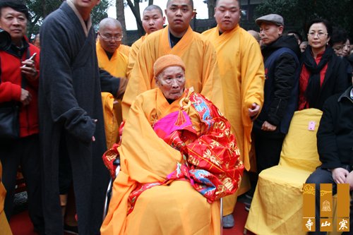 年高龙树五页岁,寿比宝掌一千年。慈心与乐度法海,悲愿拨苦利人天。随后,长老弟子对老和尚行拜寿礼。