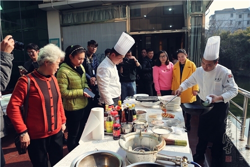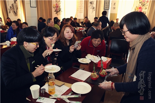 社区居民品尝灵隐寺素食