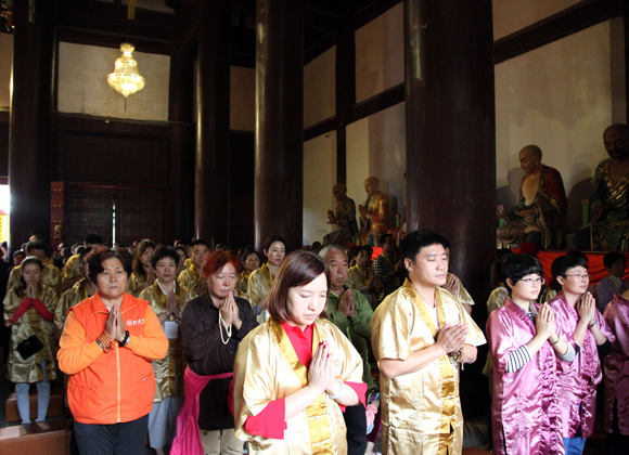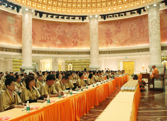 善信们随法师们共同祈愿诸佛菩萨慈悲护念国泰民安、正法久住、有情众生无病无灾、幸福非常。