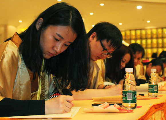 法场寂静,施主们十分专注,心如止水,一笔一划皆如禅,快乐和智慧慢慢地潜入心中来。