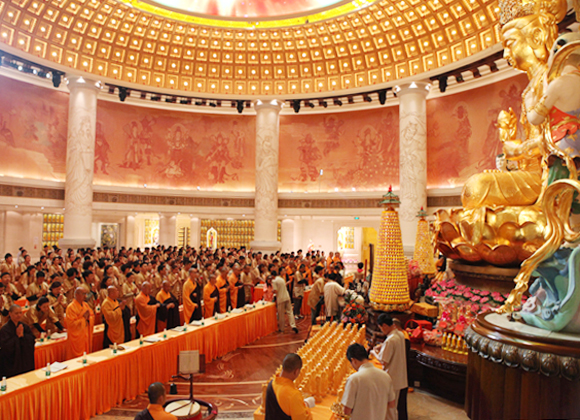 以佛法的殊胜功用来庄严人心、净化心灵、启迪智慧,使社会祥和安定。