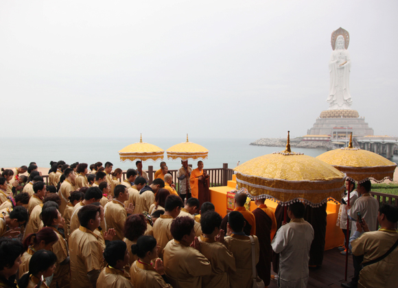 2016年3月27日农历二月十九,丙申年观音菩萨圣诞日,为圆满十方善信虔诚祈福心愿,三亚南山海上观音特于吉时举行观音菩萨圣诞日祈福法会。