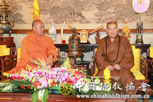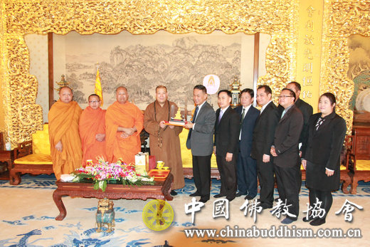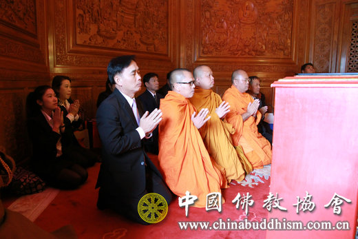 2016年3月28日上午,以泰国摩诃朱拉隆功大学沙威·乔迪克副校长为团长的泰国佛教代表团一行14人赴中国佛教协会直属寺院——北京灵光寺参拜佛牙舍利,受到中国佛教协会副秘书长、灵光寺住持常藏法师的热情接待。
