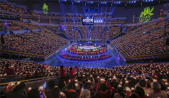 大众在法会中忏悔发愿、观照心念,念佛拜愿与佛接心。献灯时刻全场亮起两万盏心灯,法喜在每张脸庞燃起希望,星云大师慈悲的音声带领大众向佛祈愿,与会修持者法喜充满,期待明年再相会。