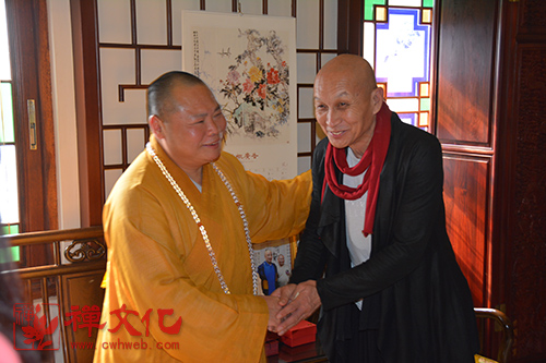 本次华林禅寺特别邀请了著名影星(曾在影片《少林寺》里饰演李世民和影片《燕子李三》当中饰演燕子李三)、武林宗师、瑜伽行者王光权老师前来参访交流,光明大和尚与各级领导亲切接待了王老师。下午3点,光明大和尚、王光权老师、冯胜平主任、杨源兴副理事长等人接受了凤凰网记者的采访。