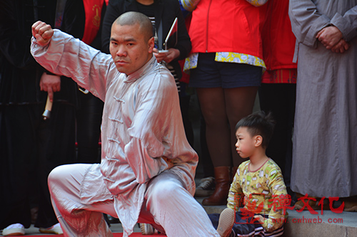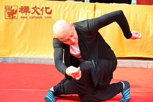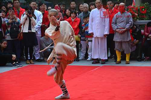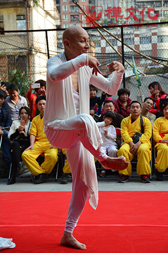 简短的采访过后,光明大和尚带领领导嘉宾移步达摩殿前观看禅武表演。禅武表演旨在弘扬“以禅修心,以武强身”的禅武文化,身心合一,内外双修,徳技并举。九节鞭、洪拳、太极拳、罗汉刀法……各路武林高手纷纷亮出自己的拿手好戏,一招一式间让观众着实体验了一把禅武带给人的心灵洗涤。最后,王光权老师亲自登台,他带来的禅武瑜伽柔中带刚,一呼一吸间体现了他所说的心平气和,此番表演将活动推向了高潮,赢得了观众热烈的掌声,至此,交流会圆满结束。