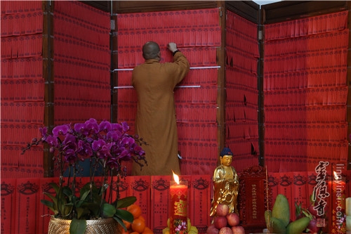 清明的气氛渐浓,一声春燕的呢喃,衔来了我们对先人的思念。逝去的亲人,数不清的慈恩,千重山万重水的魂牵梦萦,像偶尔滑过的流星,一时折痛了时光,折痛了忆觞。 受佛力感召,现场的信众居士游人香客纷纷为自己的亲人随喜,写下牌位,祈愿通过大德法师们七昼夜的持咒诵经,借助佛菩萨加持之力加,使已故之人沐浴佛光,能往生西方极乐世界,从此脱离三界轮回之苦。庇佑现世的亲友师长,常乐我净,身心健康,如意吉祥。 梵呗声声,经声朗朗,先辈在我心中,我在佛的身旁。