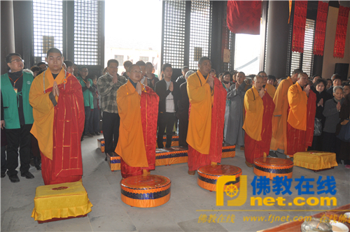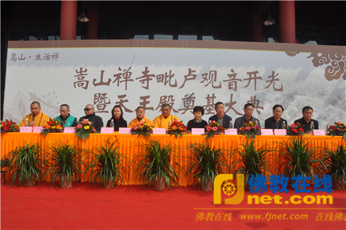 嵩山禅寺圆通宝殿毗卢观音圣象开光法会上午10:08举行,能开法师、明琛法师、常德法师、乘高法师、本法法师五大士主法开光法会,嵩山禅寺两序大众加持法会,参加庆典仪式的居士、四众弟子随喜参加法会。(文:蒋月兴)
