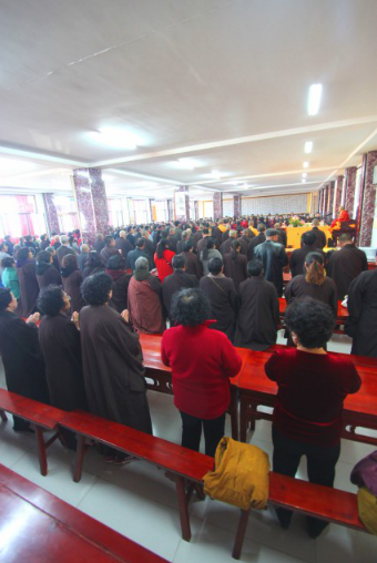 下午14时许,三皈五戒法会正式开始。四众弟子礼请昌义大和尚亲临法会,为诸佛弟子做三皈本师,传授三皈五戒。昌义大和尚拈香礼佛,唱诵炉香赞为庄严法会,带领信众纳受三皈五戒。受戒开始,昌义大和尚向新纳受戒体的信众开示皈依及受戒功德,戒子们明白了三皈五戒的意义和功德。法会现场庄严殊胜,信众诚心虔跪,合掌礼拜,悉心聆听,认真纳受戒体。昌义大和尚带领大众在三宝面前发下了四弘誓愿。祥和的气氛中传来阵阵“能持”的坚定信愿。