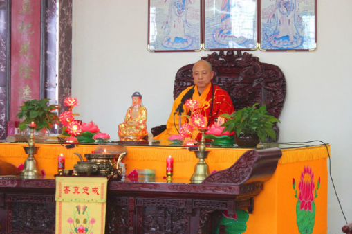 下午三皈五戒传授法会,礼请大和尚为四众弟子传戒、说法。