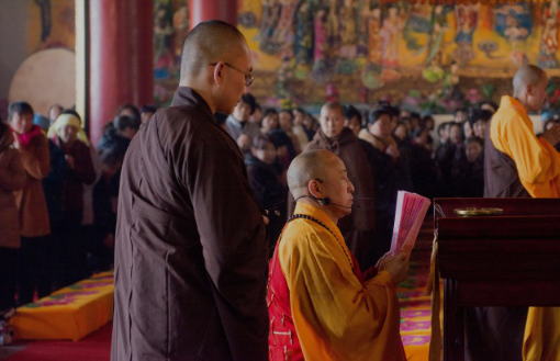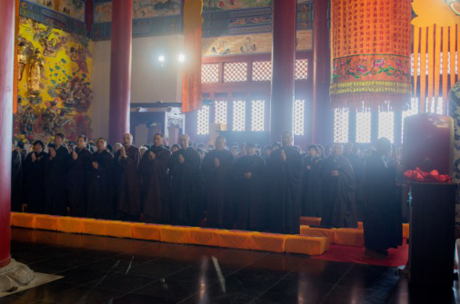 僧众领诵大悲神咒,梵音和雅,清净庄严