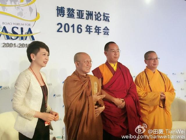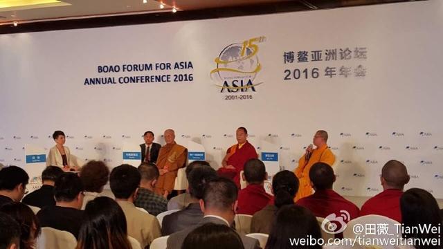 △凤凰卫视主持人胡玲微博发文“这是博鳌首次邀请宗教领袖对话,我还是第一次听十一世班禅大师讲话。谈什么是善,如何看待宗教领袖,十一世班禅说,除了戒律上的表率,造诣上的服众,更是一份责任和担当,拥有使众生脱离苦难的勇气,缓缓的一番话说完,全场掌声。以为博鳌人都走光了,没想到还有这么多人挤爆这场。”