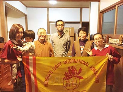 发挥无缘大慈、同体大悲精神,福冈佛光青年陪同法师深入灾区,佛光会员则为后盾,持续在福冈佛光山展开物资采购及打包工作。托菩萨保佑、龙天护持、众人关心,送物资进灾区一路平安顺利,18日凌晨2点半左右平安顺利回到道场。日本佛光山总住持满润法师关心救灾状况,东京佛光山住持觉用法师也配合发起救灾专款劝募。