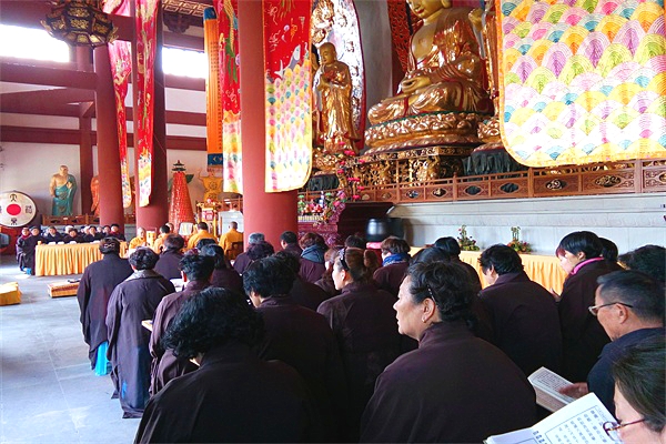 2016观音祈福暨清明超度法会在景会寺大雄宝殿内举行,法会由佛闻法师主法。观音佛七期间四众弟子精进虔诵普门品礼拜慈悲观音宝忏,感念菩萨慈悲;法会庄严肃穆,梵呗诵唱,在场善信至诚顶礼祈福,法喜充满。