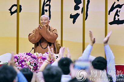 “禅的生活文化”第二场,民众掌声欢迎星云大师。(图片来源:凤凰佛教)