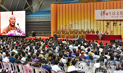 星云大师主讲“禅的生活文化”第二场,传授民众有关禅的简单修行法。(图片来源:凤凰佛教)
