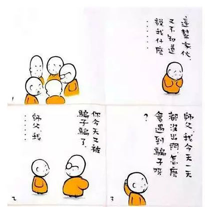 论其内容:除去对日常活动的宣传,这个新媒体矩阵的内容保持着极高的原创度:每日诙谐有趣的四格漫画,讲述着通俗易懂的佛学哲理;每日对粉丝问题的回答,点赞都会有上百人。