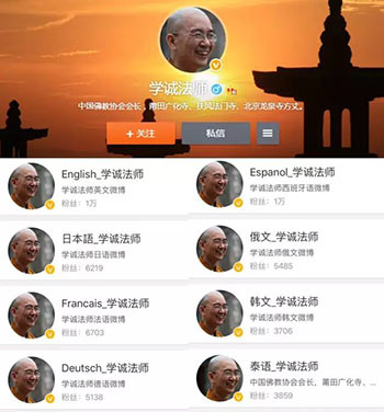 论其用户:“和尚们”的微博大多都有上万的粉丝,单看关注度最广的“学诚法师”的微博,39万的粉丝已让大家叹为观止,这还不包括其开设的德、日、英等八种外语的微博小号,也就是说,法师的影响力已经传到了国外。