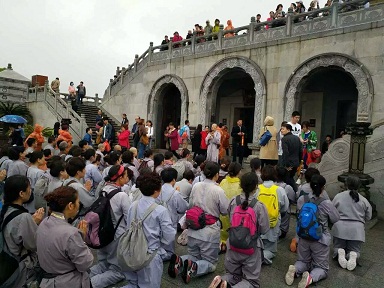 17日,惟净法师一行又来到珞珈山,先后朝礼了圆通禅院、大悲禅院、大觉禅院等。直到当日下午两点,圆满朝拜普陀山,108位信众法喜充满,心开意解。