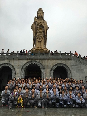 苏州长寿庵朝礼普陀山信众在南海观音前合影