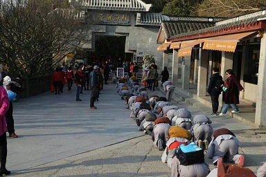 苏州长寿庵朝礼普陀山信众“三步一拜”南海观音菩萨