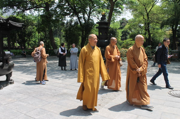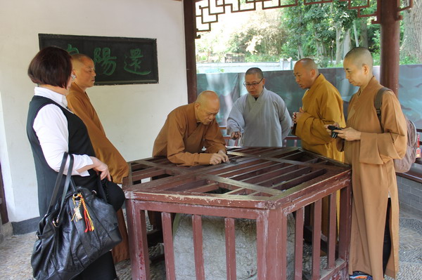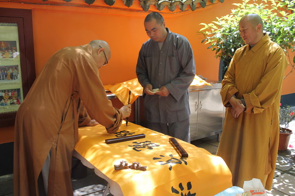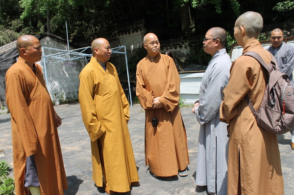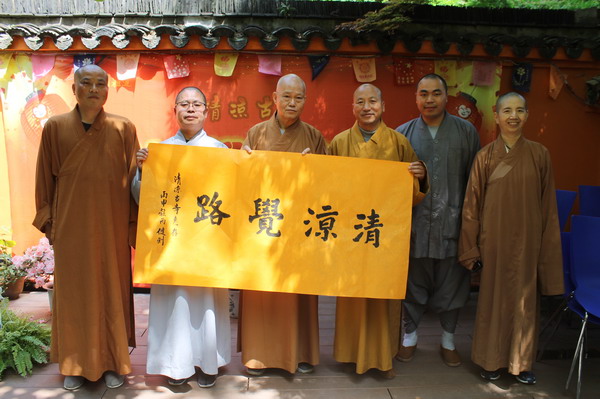 4月18日,谷雨前夕,澳门佛教总会会长健钊长老,中国佛教文化研究所执行所长、香港宝莲禅寺方丈净因大和尚,相携来到法眼祖庭清凉寺,兴致勃勃地实地察看南唐古井及明代古刹遗址后,在清凉小院与理海法师作了愉快的交流,并挥毫祝福,留下了“清凉觉路”的珍贵墨宝。