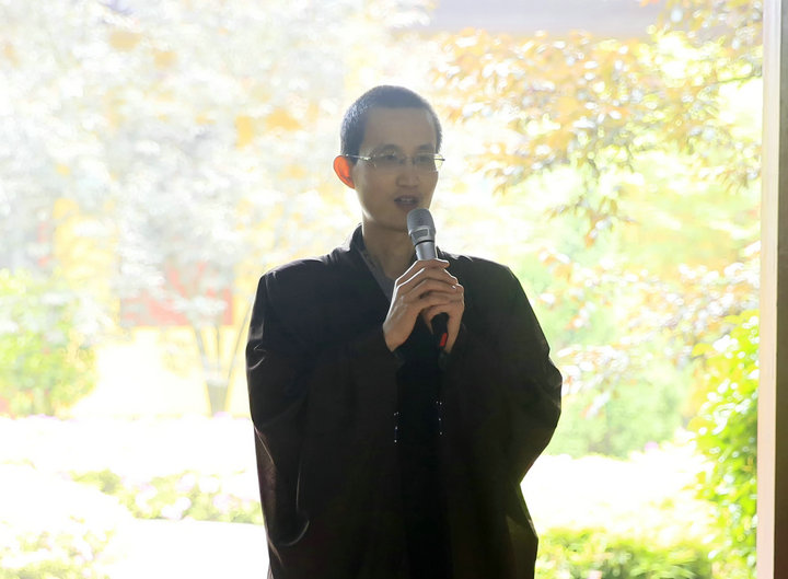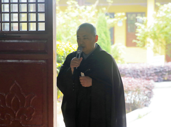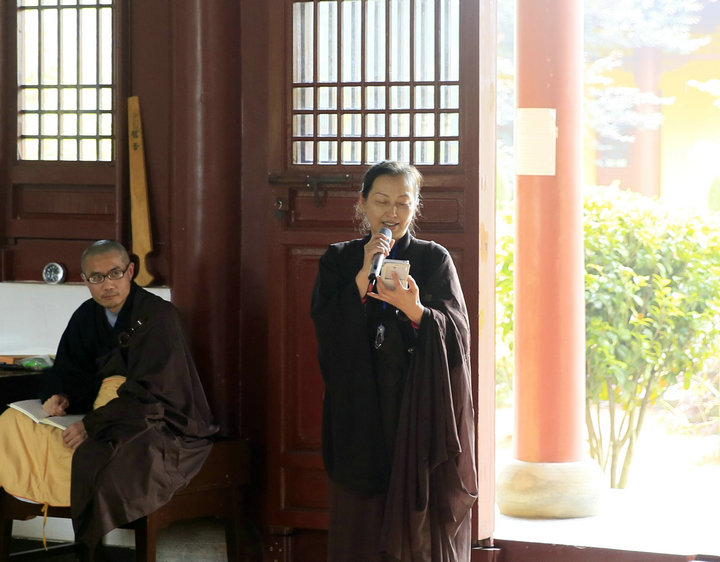 这次闭关中,有一对来自北京的母子,二人同是北京普贤莲社的会员,这是第二次一起来祖庭参加闭关念佛,与东林寺结下了甚深的法缘。母子同心同愿,念佛求生极乐,此情此景,令人欣羡、赞叹。两人也各自分享了彼此的闭关体会。儿子先上台发言,言自己最大的法益是从“佛学”转变成“学佛”。年青人聪明好学,以多闻、讲说为乐。通过闭关念佛的实践后,方体会到知易而行难,也看到自己真实的生死凡夫相,生大惭愧,立志要把理论落实于践行上来。他还分享了自己在养生学方面的心得,谈到清淡的饮食是修行人良好的助缘。随后母亲也上来分享了她如何克服身体的病苦和散乱,一步步达到安住佛号,获得身心的轻安与法喜。