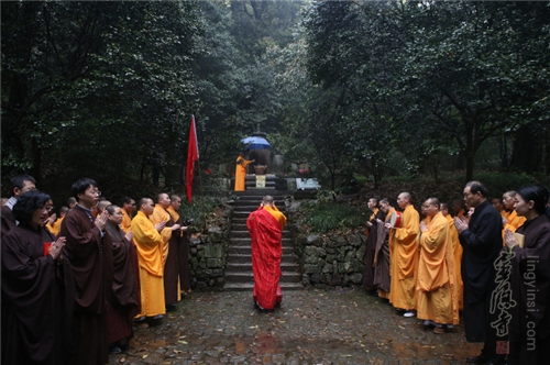 2016年4月3日,清明节前夕,灵隐寺法师、居士以及杭州佛学院法师,百余人前往莲池大师墓塔前祭扫,以此缅怀历代祖师住世弘法、续佛慧命、荷担如来家业的甚深功德;鼓励后学精进道业,勤修三学,饶益有情;涵育广大居士善信,发菩提心,行菩提道,自利利他。