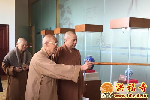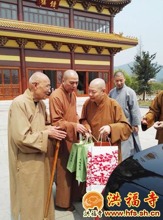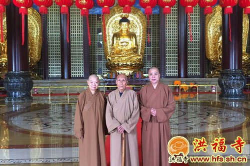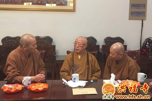 2016年4月13日上午,上海洪福寺住持圣怀法师陪同新加坡自度庵住持贤祥法师等一行参拜灵山大佛,拜访中国佛教协会咨议委员会副主席、江苏省佛教协会及无锡市佛教协会名誉会长、祥符寺方丈无相长老,长老慈悲热情款待。