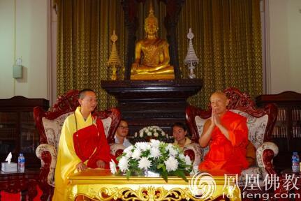 崇化大和尚在会谈中说:中国云南与贵国共饮一江水,澜沧江湄公河流淌的是世代的友谊,我们共同信仰佛教,无论南传佛教与北传佛教都是佛陀的弟子,我们共同践行佛陀的慈悲本愿,共同在传播和平与和谐的佛音,希望能在2016年崇圣论坛时与长老再度相聚,通过相互了解,进一步加深两国佛教间的交往,为佛教事业在新时代和全球化的发展中携手共进。会谈结束后,在长老陪同下参拜了供奉佛祖胸骨舍利的塔銮寺。
