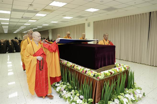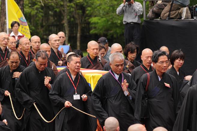 中台禅寺发言人见允法师表示,惟觉长老生前并无特别指示法会仪式,仅教导弟子及信众遵从修行原则,利益大众。法会后中台禅寺弟子将持续诵经一周,园区将于5月2日重新开放。法会结束后,僧众及居士信众分跪路旁,迎送惟觉长老圣龛。遗体则由近3000信众与法师护送到台南白河大仙寺,大仙寺特别在通往火葬场的道路铺了红地毯,下午4时举行荼毗(火化)法会,场面庄严肃穆。(图:中时电子报)