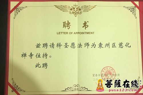 2016年4月20日,江西宜春袁州区佛协会长圣愿法师荣任袁州区慈化禅寺住持。寺院两序大众列队迎请住持圣愿法师,圣愿法师拈香礼佛。四众弟子、护法居士、社会各界人士莅临,共同见证殊胜的时刻。