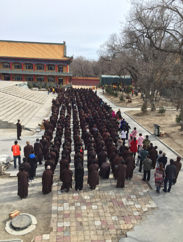 僧众和斋主恭身肃立在灵龛前,大众居士排列在后,长长的队伍一直延伸到百米外。