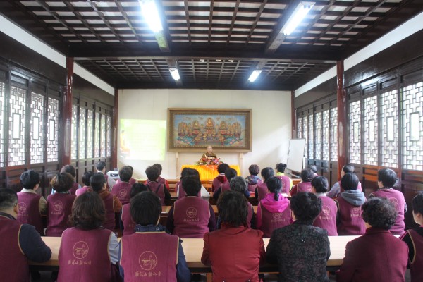 上午7点30分他们从各地来到能仁寺客堂报到,8点学员集中在禅堂行香、坐禅;9点30分在大雄宝殿诵经祈福,以此来净化心灵。中午在能仁寺用餐之后,还举行慈善放生活动,下午1点30分在讲堂聆听能仁寺方丈了法法师讲《对禅修的认识》。了法法师说:“通过禅修可以缓解压力,增强定力,由于禅修的训练,将意念集中在一处,来思考人生的真理,从而让大脑里的杂质沉淀下来,思维如水一样清澈、透明,以此来开发智慧。”了法法师还向学员介绍打坐禅修的方法和要领,大家都认真听讲,法喜充满。2点45学员们又进入禅堂体验禅修,经行、坐禅,让心灵得到洗涤与宁静,3点50分禅修结束,大家都愉快地体验了“因过竹院逢僧话,偷得浮生半日闲”的悠闲生活。