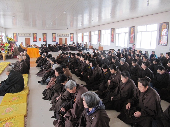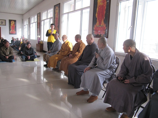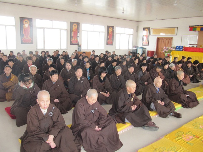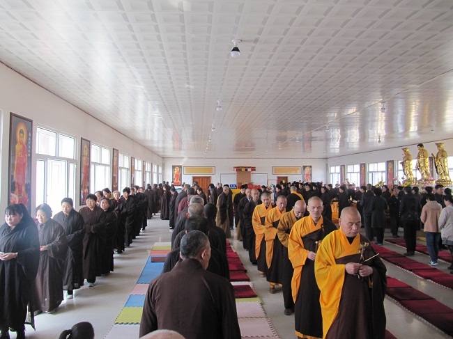应吉林榆树市四众弟子邀请,4月1至8日,净土祖庭庐山东林寺德凯法师、道定法师、慧贞法师、德愿法师、妙义法师、一行五人前来榆树市五龙镇永慈念佛堂进行佛七法会。3月31日下午,法师一行到达,当晚与大众见面并讲了佛七共修法会的要求。法师们的到来,让这一方求法若渴的信众倍感欣喜。 五龙永慈念佛堂地处榆树市乡下村镇,交通不是很便利,虽然天冷风大,还是有几百位修行人前来参加。