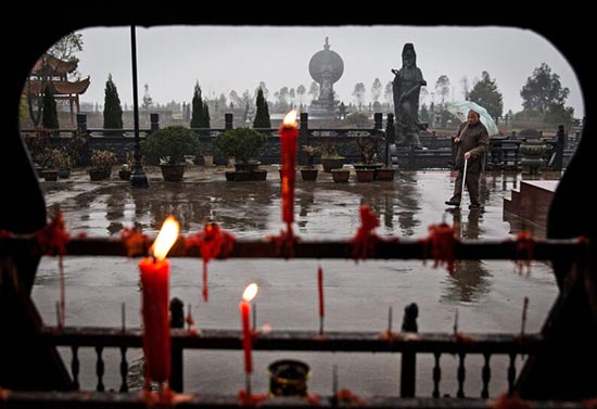 住在这里的一位老人从大殿前走过(图片来源:美国在线)