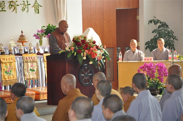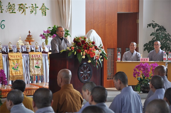 讲经交流会上共有十位法师和三位居士分别就《观世音菩萨普门品》等五部经典,围绕“清净和谐”的主题进行了演讲。