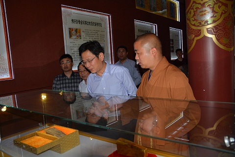 李国华局长一行在能仁寺当家曙明法师引领下,先后参观了妙通塔、大雄宝殿、佛牙殿、藏经楼、方丈楼、念佛堂、观音殿等,认真听取了曙明法师关于涟水能仁寺、妙通塔历史渊源的介绍,瞻仰了挖掘妙通塔地宫时出土的佛牙影骨舍利、金棺、银椁等佛教珍贵文物,对能仁寺、妙通塔的复建和发展给予充分肯定,并对能仁寺的前景寄予了厚望。