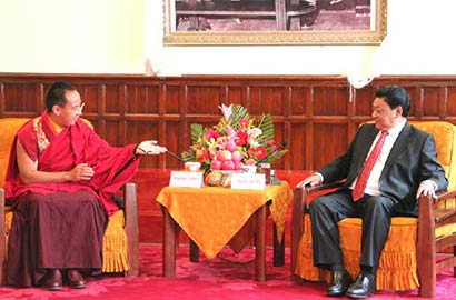 西藏自治区领导在拉萨雪林多吉颇章会见班禅一行