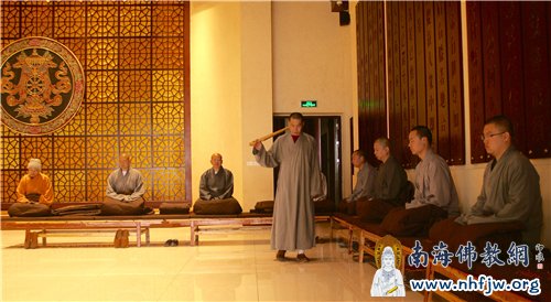 深圳弘法寺监院智空法师做简短开示,即日起执事班便开始坐香了,坐香就是坐见本性,一心不乱即是定,外不着相即是禅,参禅打坐是出家人的本分事,坐一支净香便能总持无量功德,坐香有很多好处,不仅身体好,精神也会好,修行也会好,各位学员要不负大和尚的嘱托,每日坚持把香坐好。