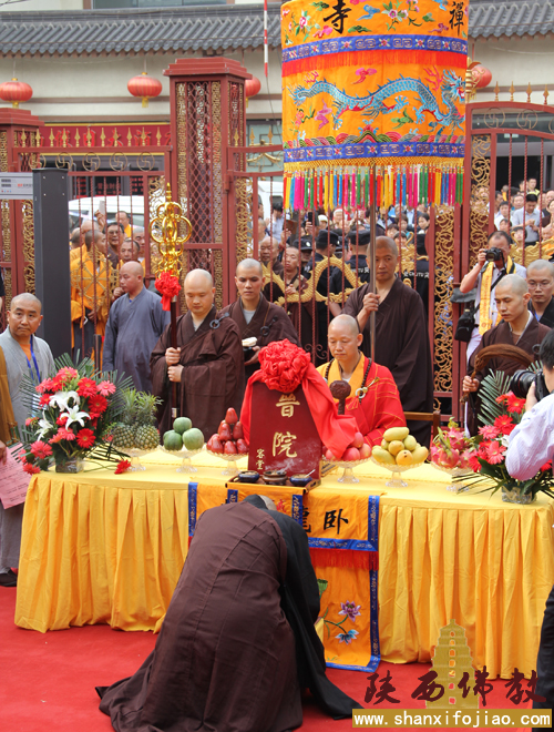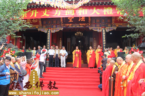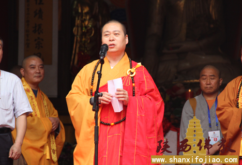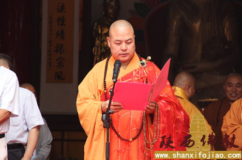 在庆典仪式上,中国佛教协会教务部副主任常顺法师宣读了中国佛教协会贺信;宽旭大和尚代表陕西省和西安市佛教协会、绍云长老代表诸山长老、西安市宗教局副局长王正权代表省、市、区宗教工作部门致辞,希望常礼法师爱国爱教,学修并进,弘法利生,光大禅门宗风。仪式结束后,诸山长老和与会领导、嘉宾一同在山门前合影留念。