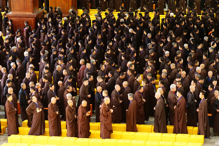 本次授戒法会的戒坛设在寺院新建成的青莲念佛堂,礼请本寺院方丈大安大和尚为戒和尚,首座本通法师为羯磨阿阇黎,监院德亮法师为教授阿阇黎,来自全国的两千多名居士报名参加了此次菩萨戒授受法会,愿为菩萨戒子。
