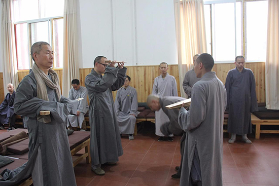 出堂用斋(监香师执香板立两侧, 照顾话头 不得放逸)